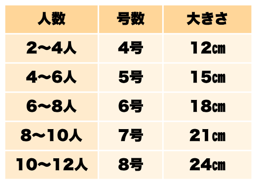 ケーキにもサイズがあってちょうどいいサイズがどれがいいのか、悩みますよね。